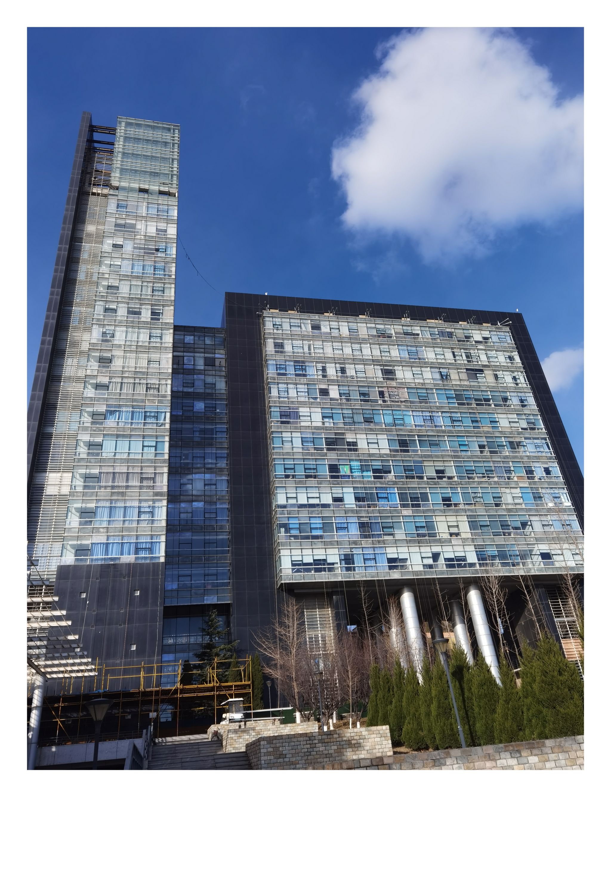 海山楼幕墙经过修缮改造,成功消除了隐框幕墙玻璃脱落的潜在风险,彻底解决了幕墙保温性能不佳、采光顶及开启扇漏水、五金件损坏和结构胶老化等长期困扰师生的难题。改造后的幕墙不仅增强了建筑的保温效能,提升了安全性,更使得外立面焕然一新,美观度大增,为师生们营造了一个更加安全、舒适、美观的办公学习环境。