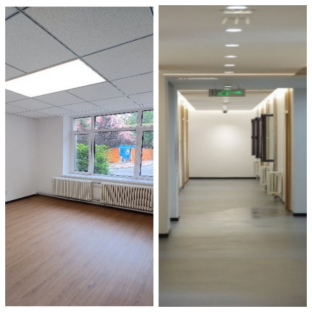 14舍始建于上世纪50年代,共三层,为砖混结构,先后作为宿舍、学校团委办公、心理中心教育咨询等使用。项目设计保留了原有建筑的历史韵味,让历史的痕迹在现代建筑中继续延续。在保留历史韵味的同时,也对其功能进行了全面升级。对建筑整体进行结构加固,一层西侧改为大工书院行政办公区,卫生间全面翻新、增设中央空调,咨询室进行隔音设计,地面铺设专业pvc地板,整体公共区域环境进行专业心理学暗示灯光处理。