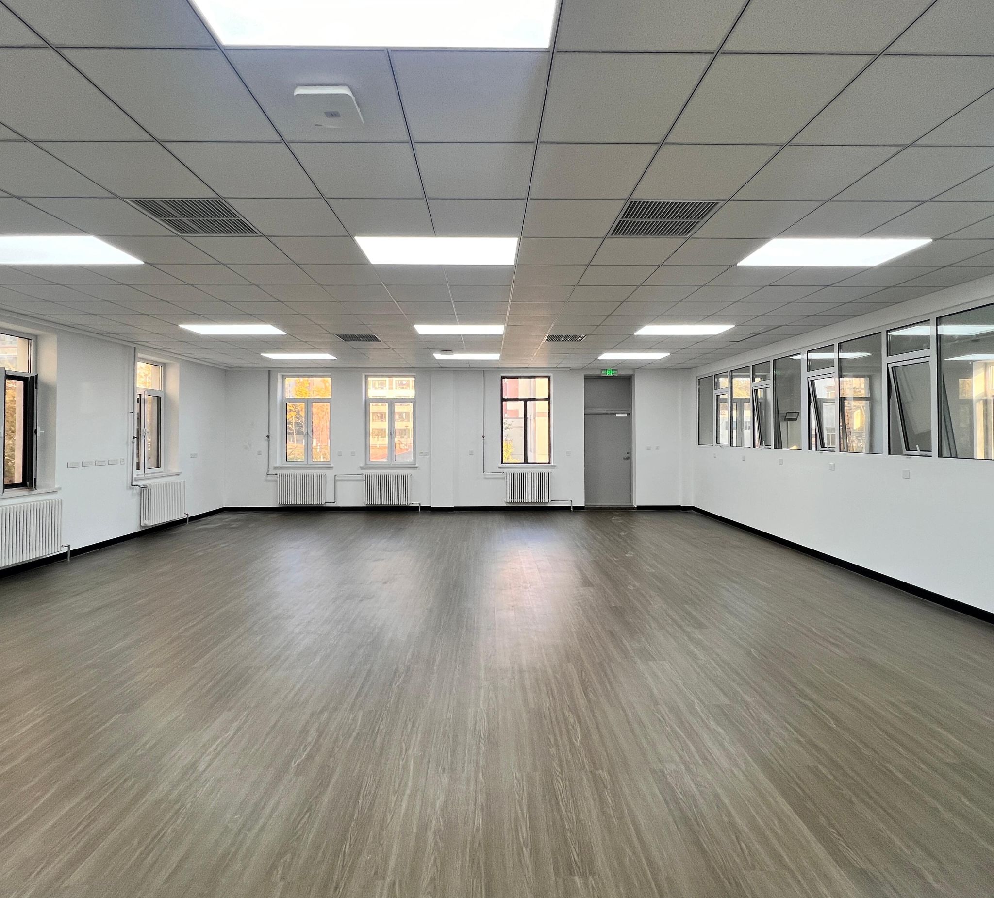 外立面整体采用浅灰色设计,视觉效果更加美观大方。楼内进行全面更新,地面铺设了专业PVC地板,墙面采用了优等环保乳胶漆,天棚则选用了A级防火的硅酸钙板和矿棉板,整体美观且实用。卫生间全面翻新,异味问题得到彻底解决。电气线路全面换新,彻底解决了线路杂乱、故障频发的问题。实验室区域则融合了现代工业风装饰,顶棚以浅灰色喷涂,营造出了现代而舒适的实验氛围。全楼增设了外立面保温及多联机空调系统,让师生在四季变换中都能享受到舒适的科研实验环境。