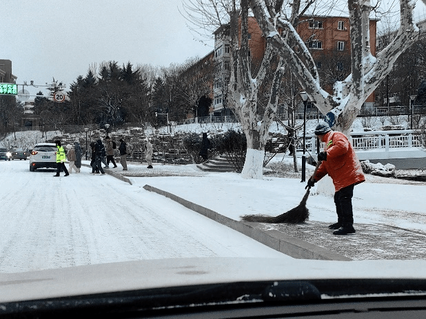 通过全体工作人员的共同努力,当日上午校园积雪得到及时清理,道路系统保持畅通,人车安全通行。