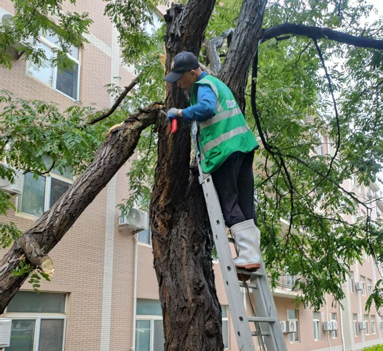 修缮中心坚决落实校领导防汛指示,迅速启动防汛应急响应。在学校防灾减灾工作群发布6次预警信息,严格执行24小时值班值守制度,做到雨中雨后巡查及信息上报;全面开启主干道雨水篦子并设置警示标识,加速道路排水;组织防汛应急队伍及时疏通积水,绿化班组快速清理倒伏树枝,环卫工人清扫路面积水,各级防汛责任人全员在岗履职,保障校园通行安全。
