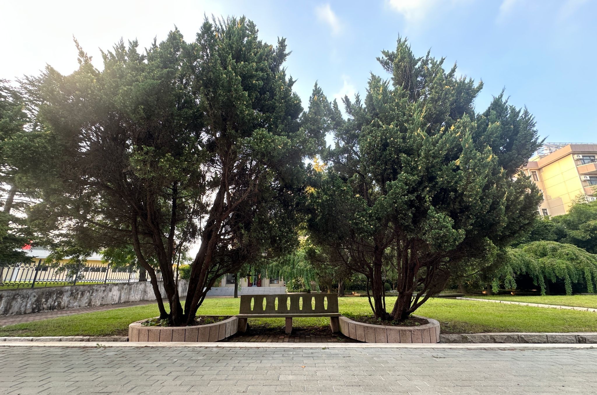 专招南侧景观树池座椅历经数十载风雨,仍风貌依旧、雅致如初。在岁月流转中,它不仅是休憩之所在,更成为一方具有人文记忆的景观符号。修缮中心坚持“修旧如旧”原则,致力于在细节中延续其历史质感与时代韵味。施工过程中,特别选用传统水刷石工艺,力求在修复的同时还原其复古基调,使座椅在功能焕新之余,依然保留岁月所赋予的独特气质。