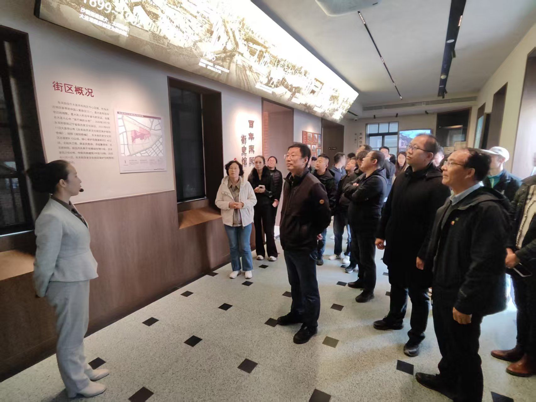 随后,支部成员来到东关街历史文化街区,重点调研“修旧如旧”理念在老建筑修缮中的实践应用。大家实地察看建筑修缮工艺与风貌保护实况,并就结构加固、材质修复及历史风貌延续等关键技术细节进行交流。通过和相关负责人的深入探讨,成员们进一步理解了在建筑更新中如何统筹文化传承与功能提升,为校园老旧建筑修缮与历史风貌保护积累了有益经验。