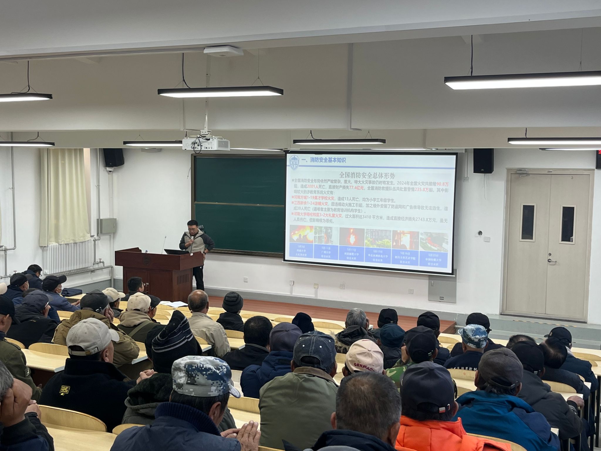 为进一步增强校园管理与修缮中心服务保障人员的消防安全意识和自防自救能力,强化消防安全风险防范,推动消防安全责任落实, 11月20日下午3时30分,校园管理与修缮中心在厚坤楼152教室召开消防安全教育大会,修缮中心副主任赫英辉、保卫处消防管理办公室主管崔闯以及修缮中心全体服务保障人员(包括环卫、绿化、巡查队、泵房、变电所、供暖等)参加。