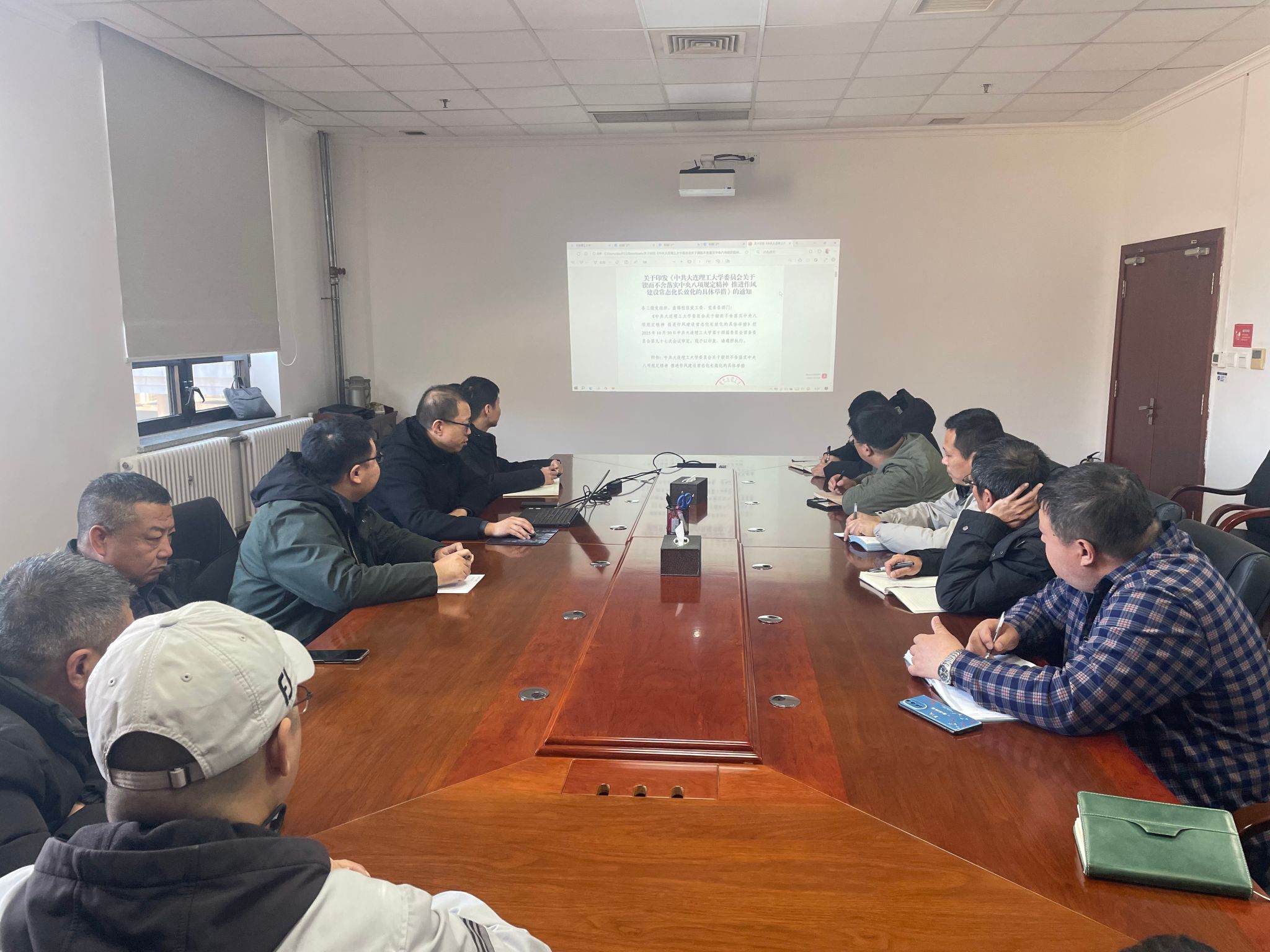 为深入贯彻落实中央八项规定精神,持续深化机关作风建设,切实提高修缮中心在开发区校区的服务保障能力,12月2日上午9时30分,校园管理与修缮中心在开发区校区信息楼410会议室组织召开机关作风建设专题会议。会议由修缮中心副主任赫英辉主持,校区两个科室全体人员参加。